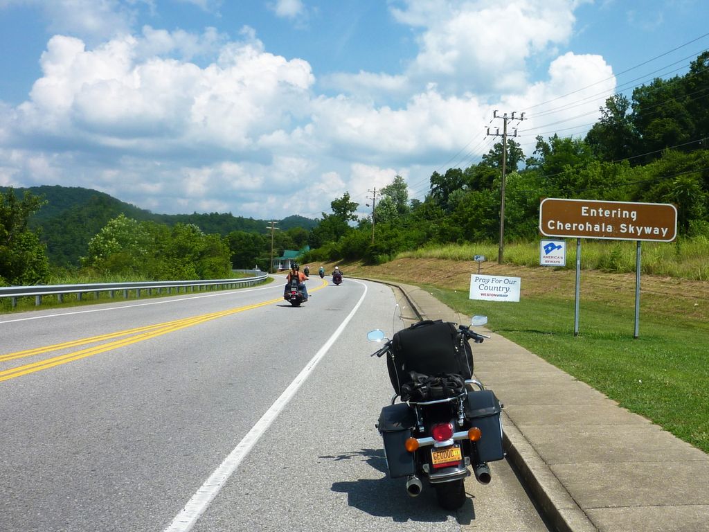 The Cherohala Skyway opened in 1996, at a cost of over 100 million dollars. The 43 mile long National Scenic Byway is a classic motorcycle ride. It runs from Tellico Plains, Tennessee, to Robbinsville, North Carolina, and passes through the Cherokee and Nantahala National Forests, hence the name "Cherohala".