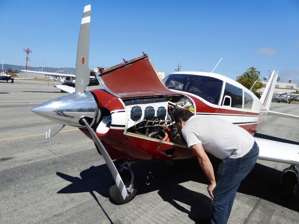Former student Alexis invites me for a ride in her friend Doug's 1959 Piper Commanche 250 HP, Doug had the engine upgraded to a 300 HP test model stunt engine, he is known to do barrel rolls. The preflight check doesn't reveal any leaks or loose wires, so we should be good to go.