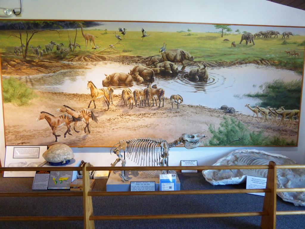 The landscape that emerges from these excavations is that of a diverse ecosystem, some 12 million years ago, that developed on a broad flat grassy savannah. The skeletons are buried at a watering hole, in a layer of pure volcanic ash, consisting of tiny shards of glass from broken glass bubbles.